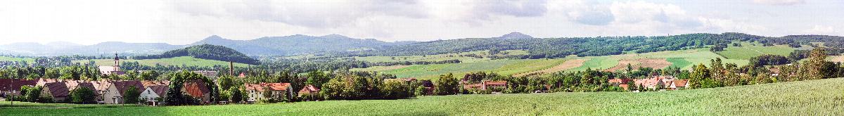 Panoramablick vom Seifhennersdorfer Windmühlberg auf die südliche Bergkette
