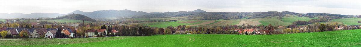 Panoramablick vom Seifhennersdorfer Windmühlberg auf die südliche Bergkette