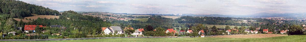 Blick von der Koitsche auf Bertsdorf-Hörnitz, auf Zittau, auf Kraftwerk Turów (Polen)