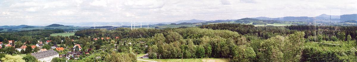 Panorama vom Wasserturm Neugersdorf, Blickrichtung: Isergebirge mit Jeschken, Zittauer Gebirge mit Lausche