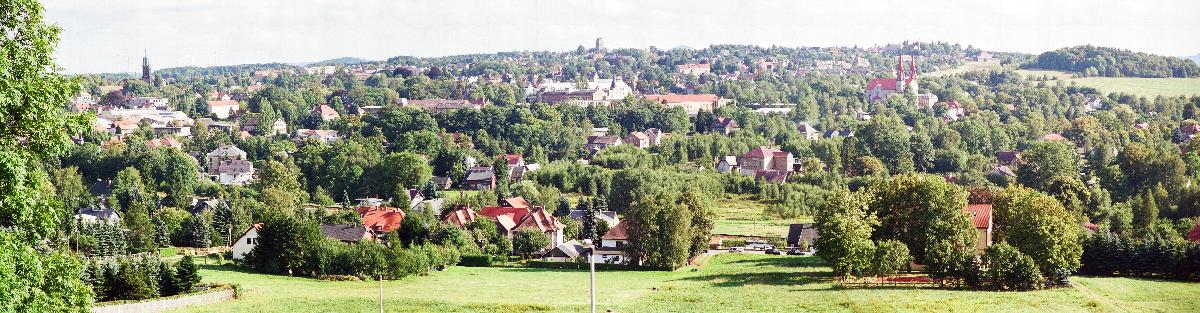 Blick vom Felsenmühlenhang am Ebersbacher Schlechteberg auf Neugersdorf und auf die Wallfahrtskirche in Phillipsdorf/Tschechien