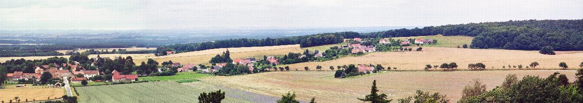 Blick vom Turm auf dem Monumentberg auf Groß-Radisch mit Hoher Dubrau