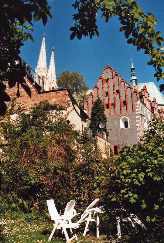 Blick auf Pfarrkirche St. Peter und Paul und ältesten Profanbau von Görlitz, das Waidhaus