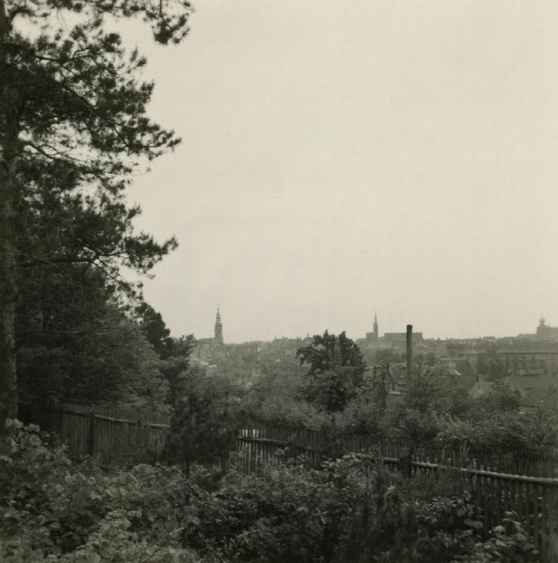 Blick vom Krematorium aus: Dreifaltigkeitskirche rechts, Rathaus links