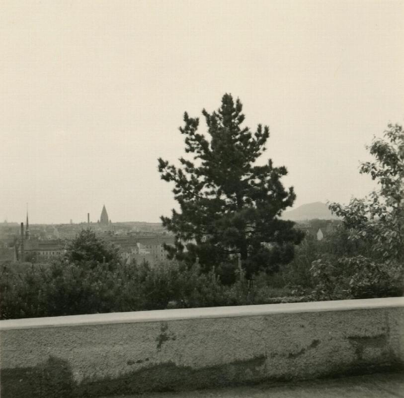 Blick vom Krematorium aus zur Lutherkirche und Landeskrone