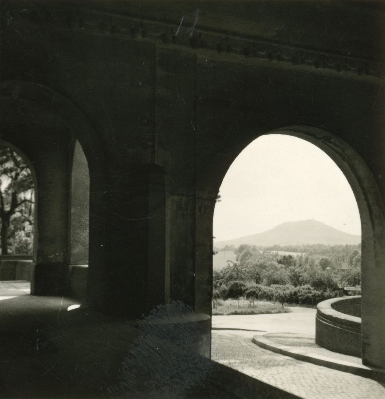 unterhalb der Kreuzkirche (Bogengang), Blick auf die Landeskrone