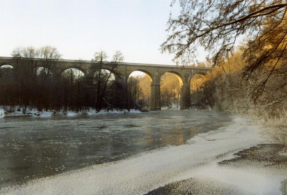 Neißeviadukt, an der Obermühle, Sonnenaufgang bei -20 °C