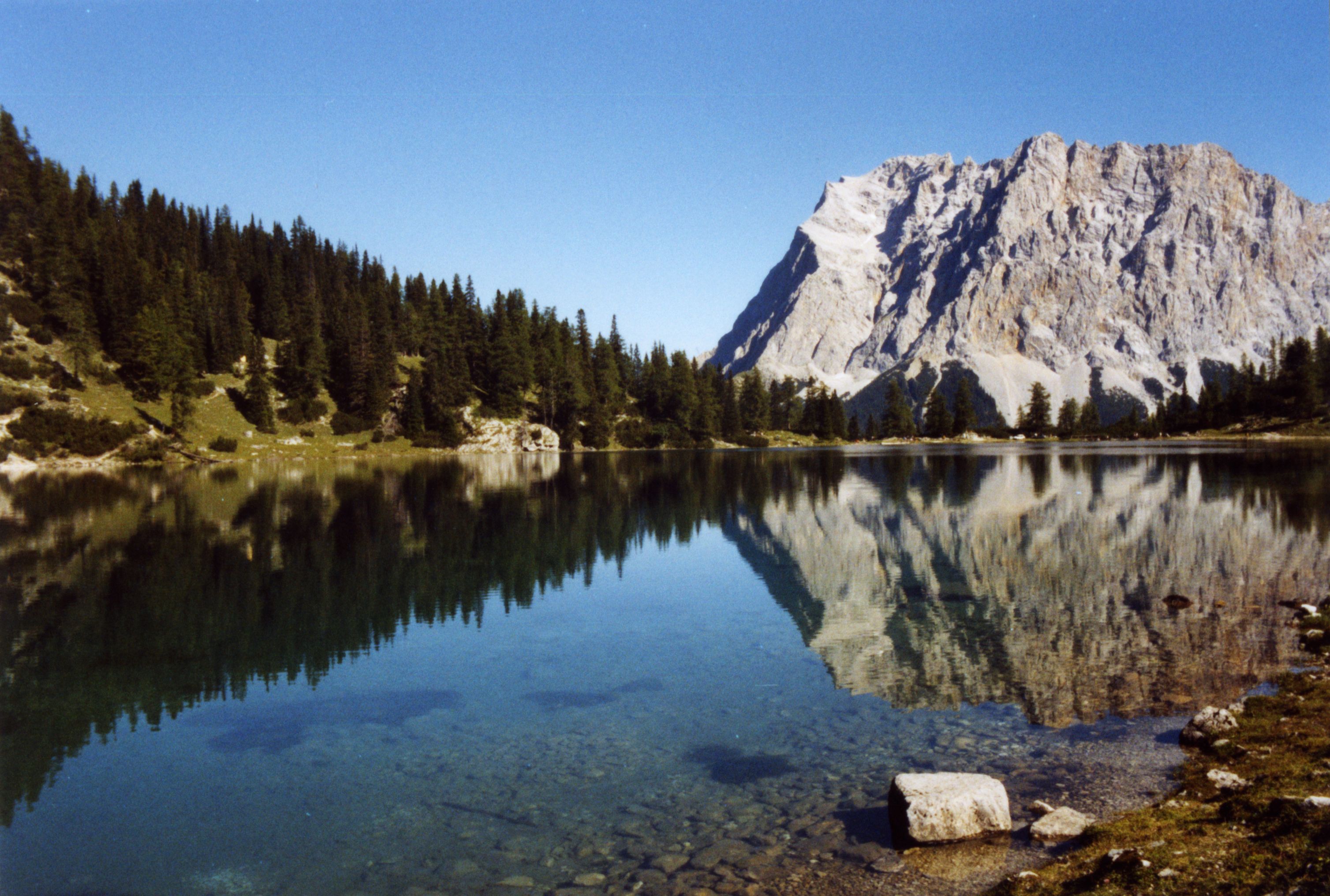 Seebensee im Mieminger Gebirge, Blick auf Wettersteingebirge mit Hauptgipfel der Zugspitze