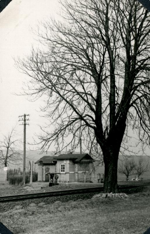 Wanderung nach Charlottenhof: Bahnwärterhaus an der Bahnstrecke (Görlitz-Berlin) beim Galgenberg/Schafberg. Davor eine schöne Kastanie