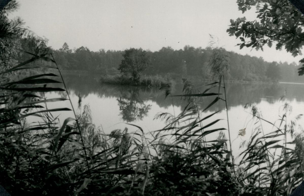 Mopedfahrt nach den Seifersdorfer Teichen: Blick über den Teich (dunstig)