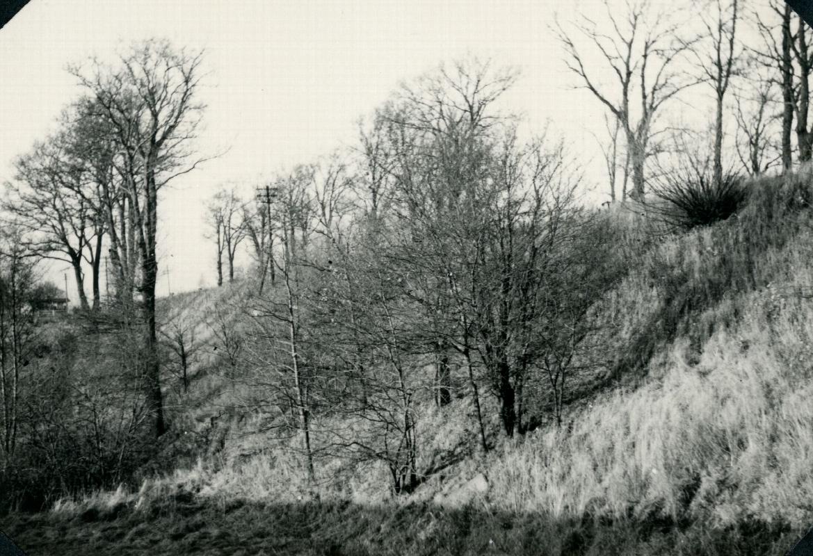 Wanderung Charlottenhof-Görlitz: Eichen am Bahndamm (hinten) zwischen Blockstelle und ehem. CuGrube (Kupfergrube) Maximilian