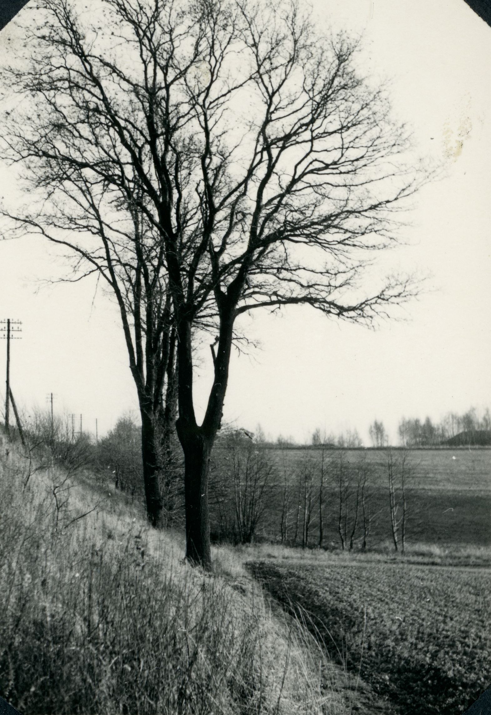 Wanderung Charlottenhof-Görlitz: Eichen am Bahndamm (hinten) zwischen Blockstelle und ehem. CuGrube (Kupfergrube) Maximilian