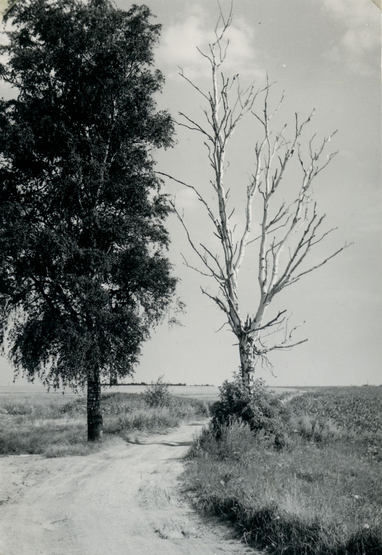 Zwei Birken von Girbigsdorf, Richtung Wetterwarte kommend. Kahle Birke bereits 1971 gefällt. Linke Birke (1975) ebenfalls abgestorben und völlig kahl