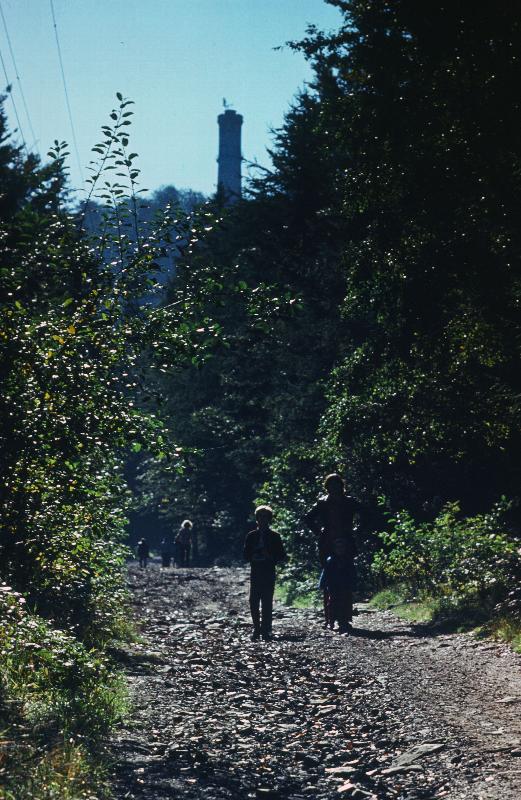 Waldweg mit dem Hochwalderturm im Hintergrund