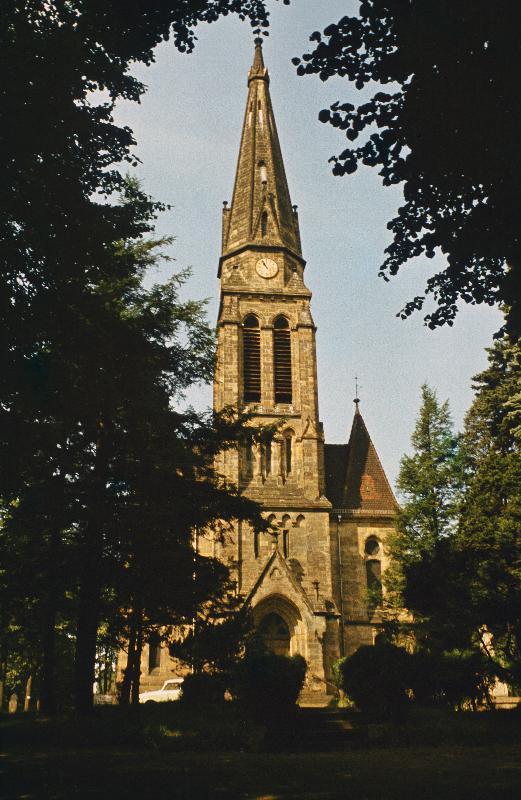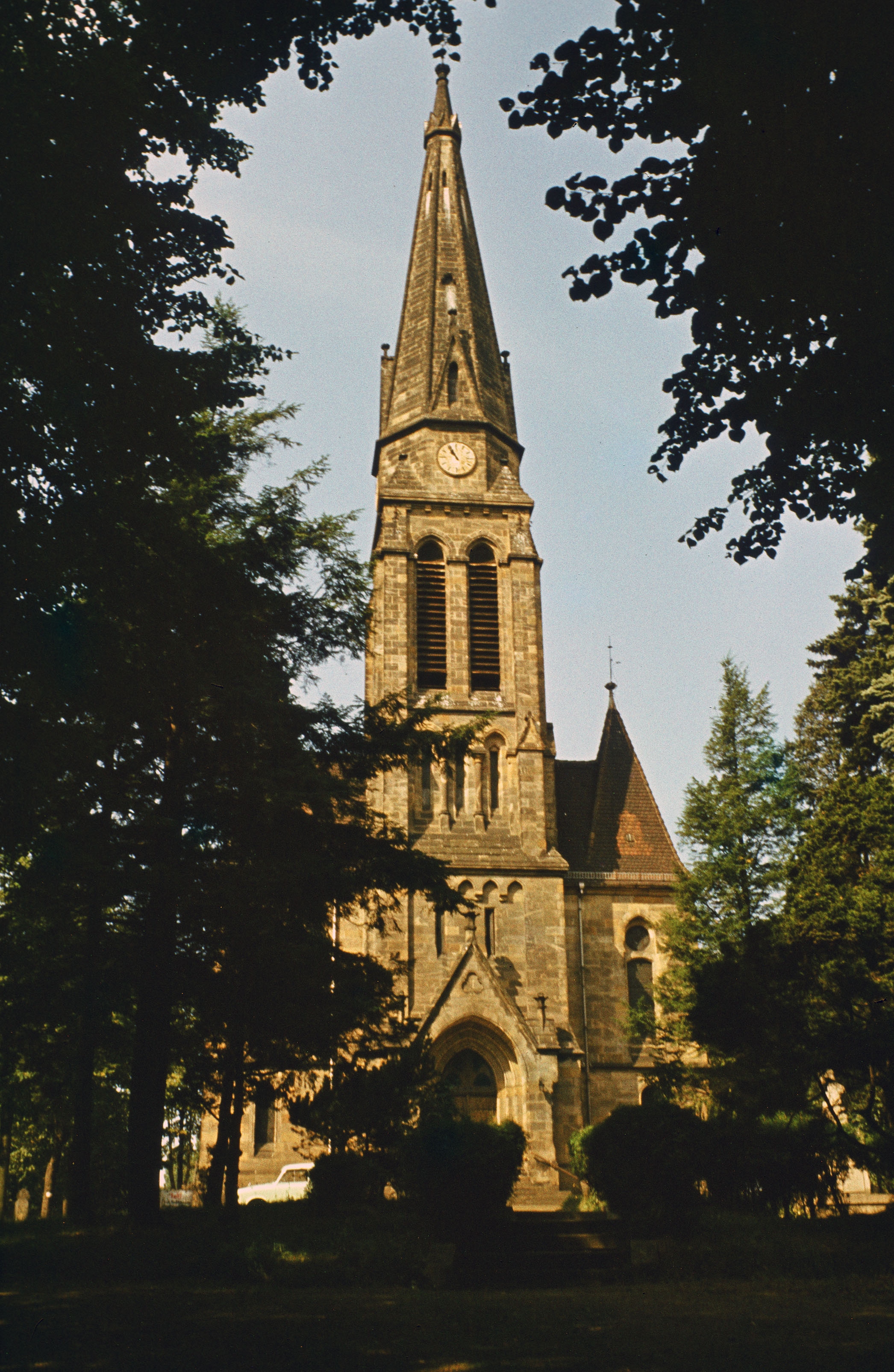 Kirche zu Olbersdorf, wegen Erweiterung des Braunkohletagebaus wurde die Kirche und der Friedhofes 1984 verlegt