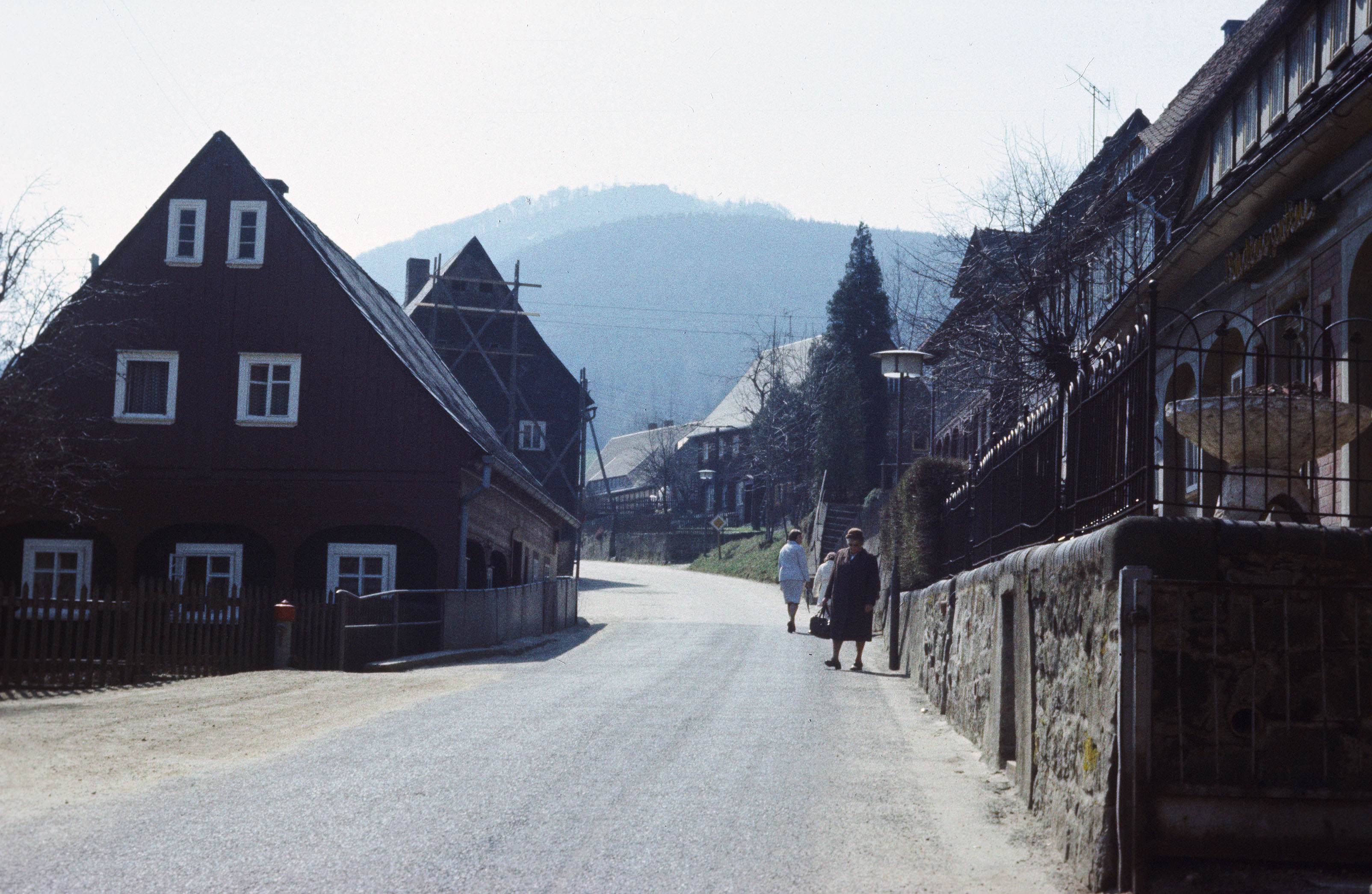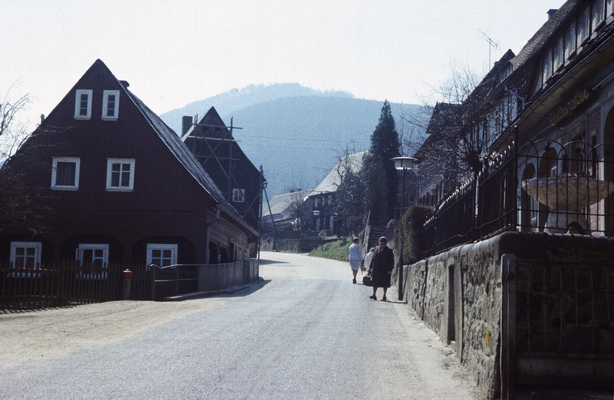 Straße zwischen Umgebindehäuser, Gastätte Lindengarten