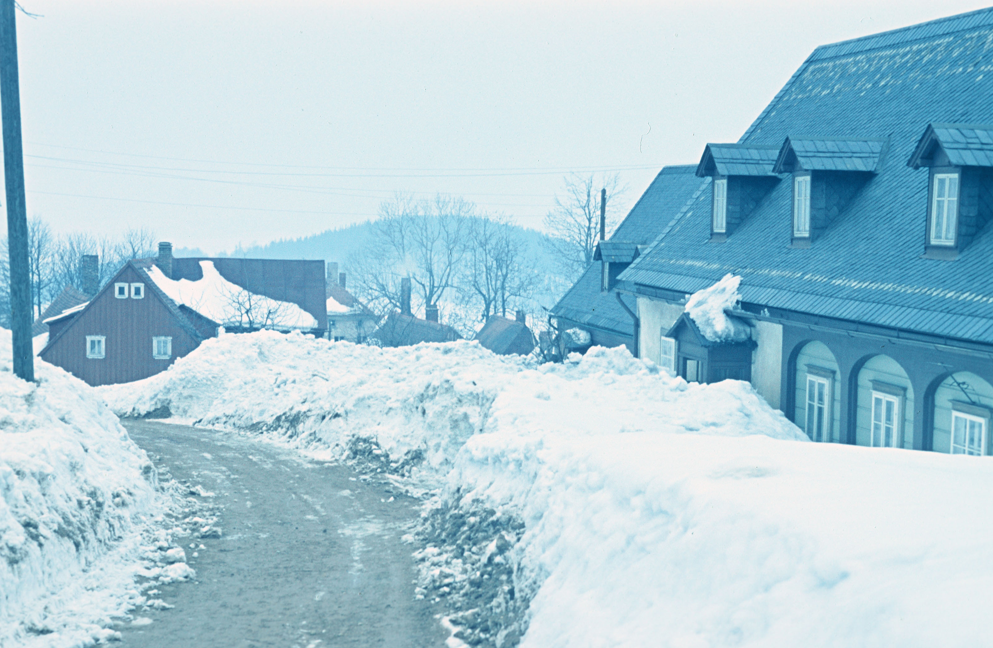 Schneeverwehung vor Umgebindehäusern