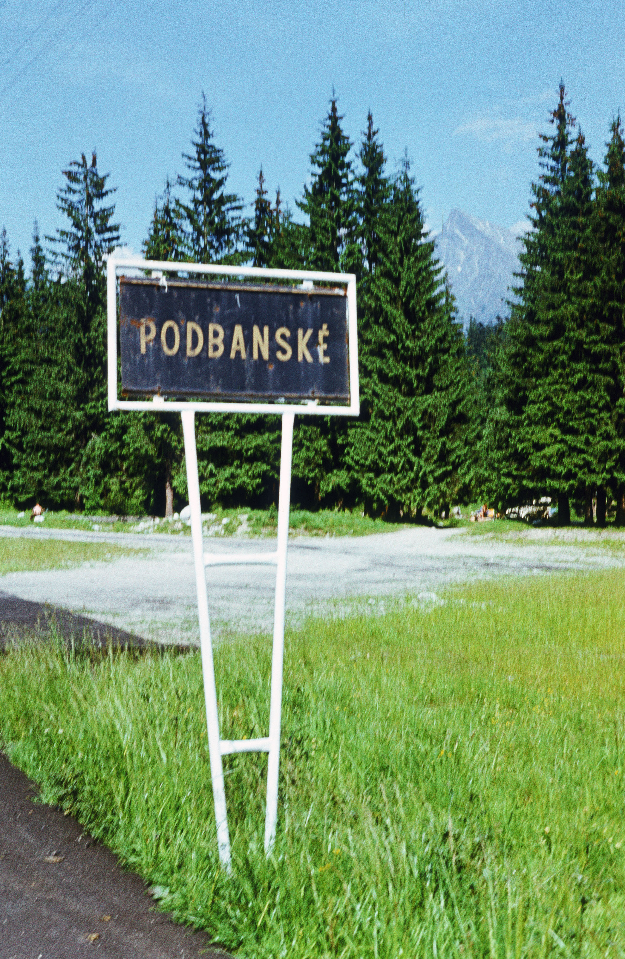 Podbanské Ortsschild mit der Kriván Gipfel im Hintergrund