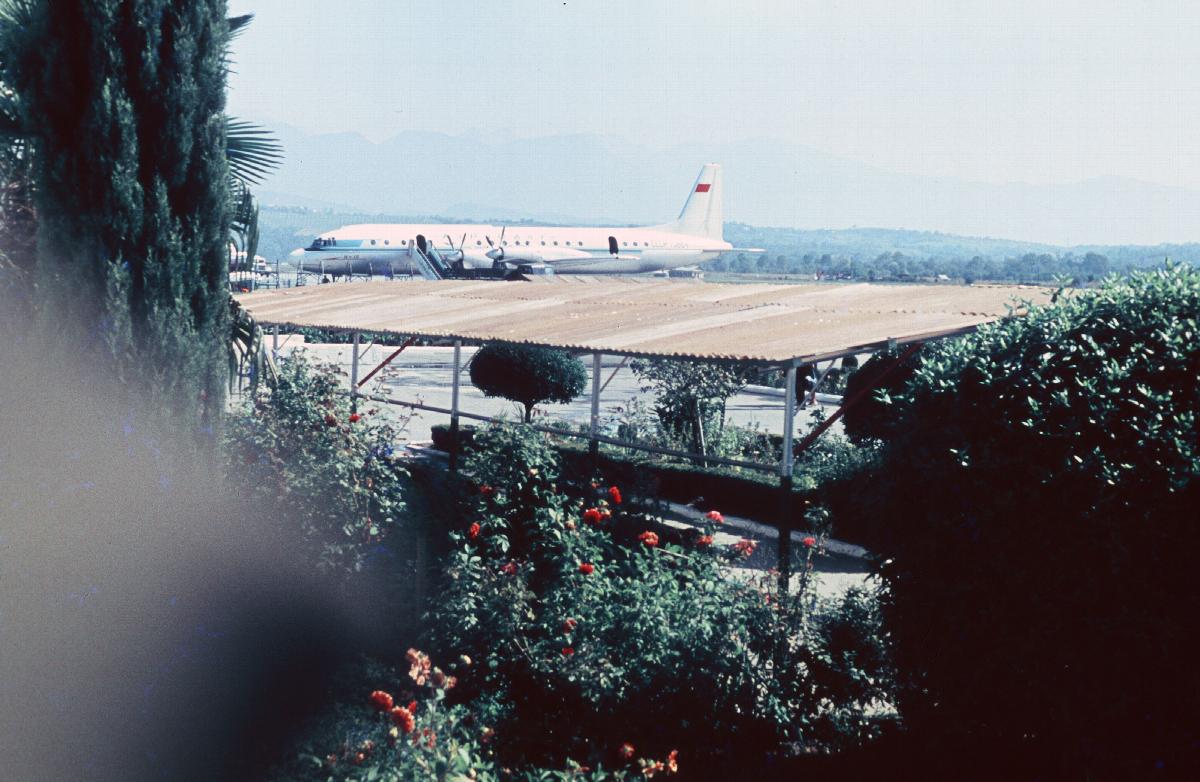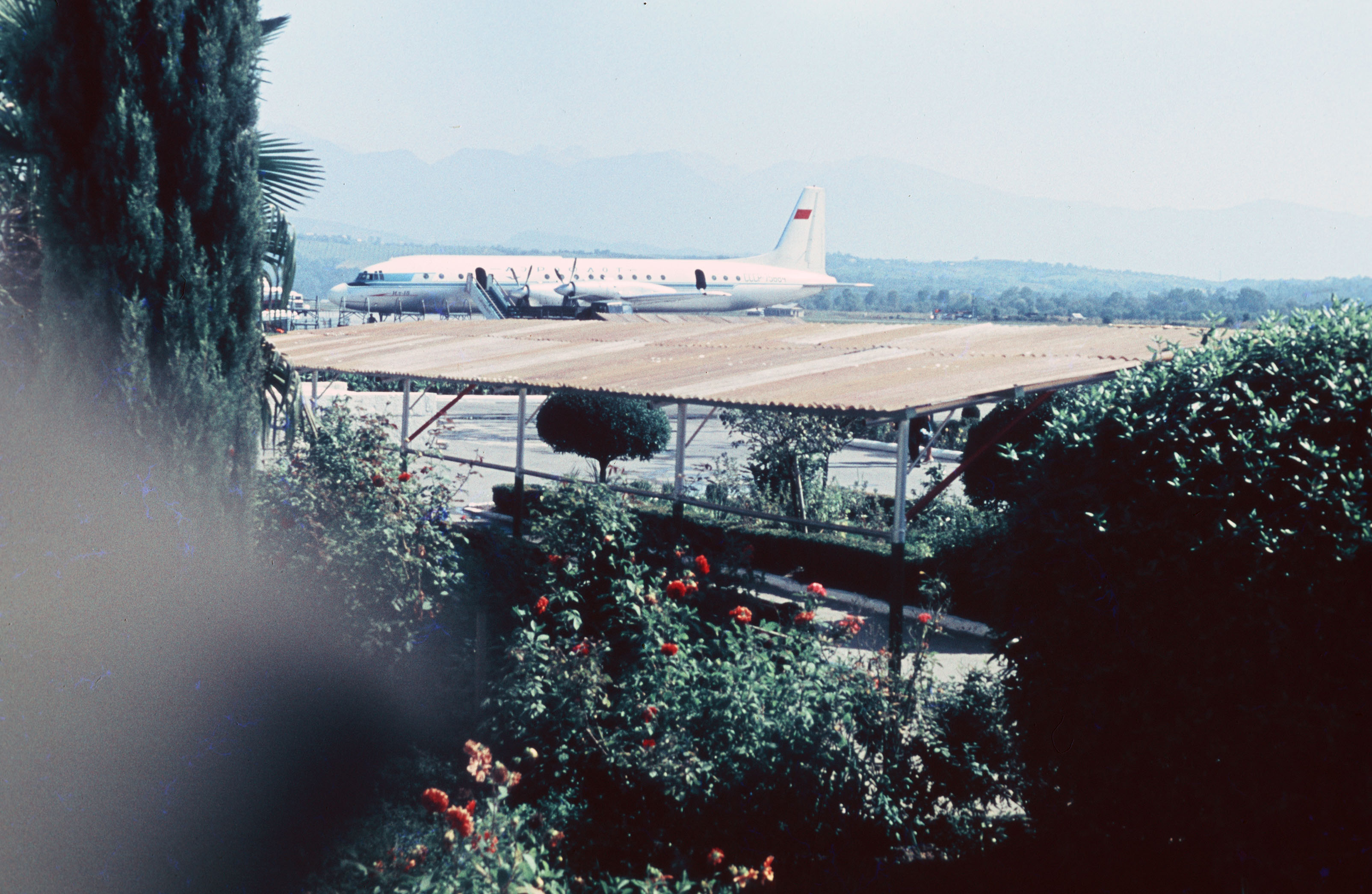 Pflanzen vor einem Flugzeug am Flughafen