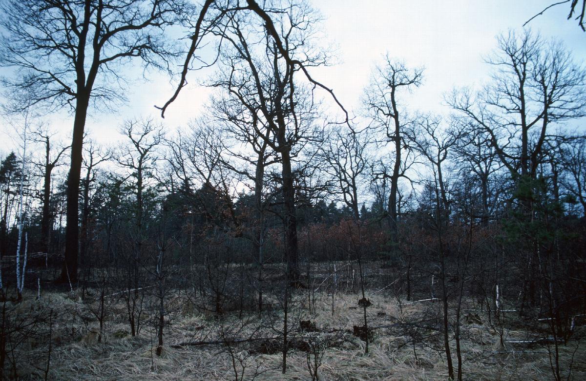 Baumstämme, nach Waldbrand