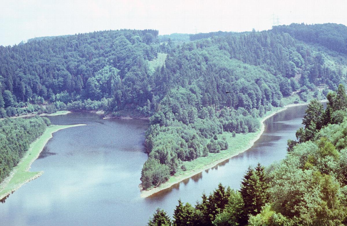 Blick von angrenzender Staumauer der Rappbode-Talsperre auf den Westteil des Stausees Wendefurth