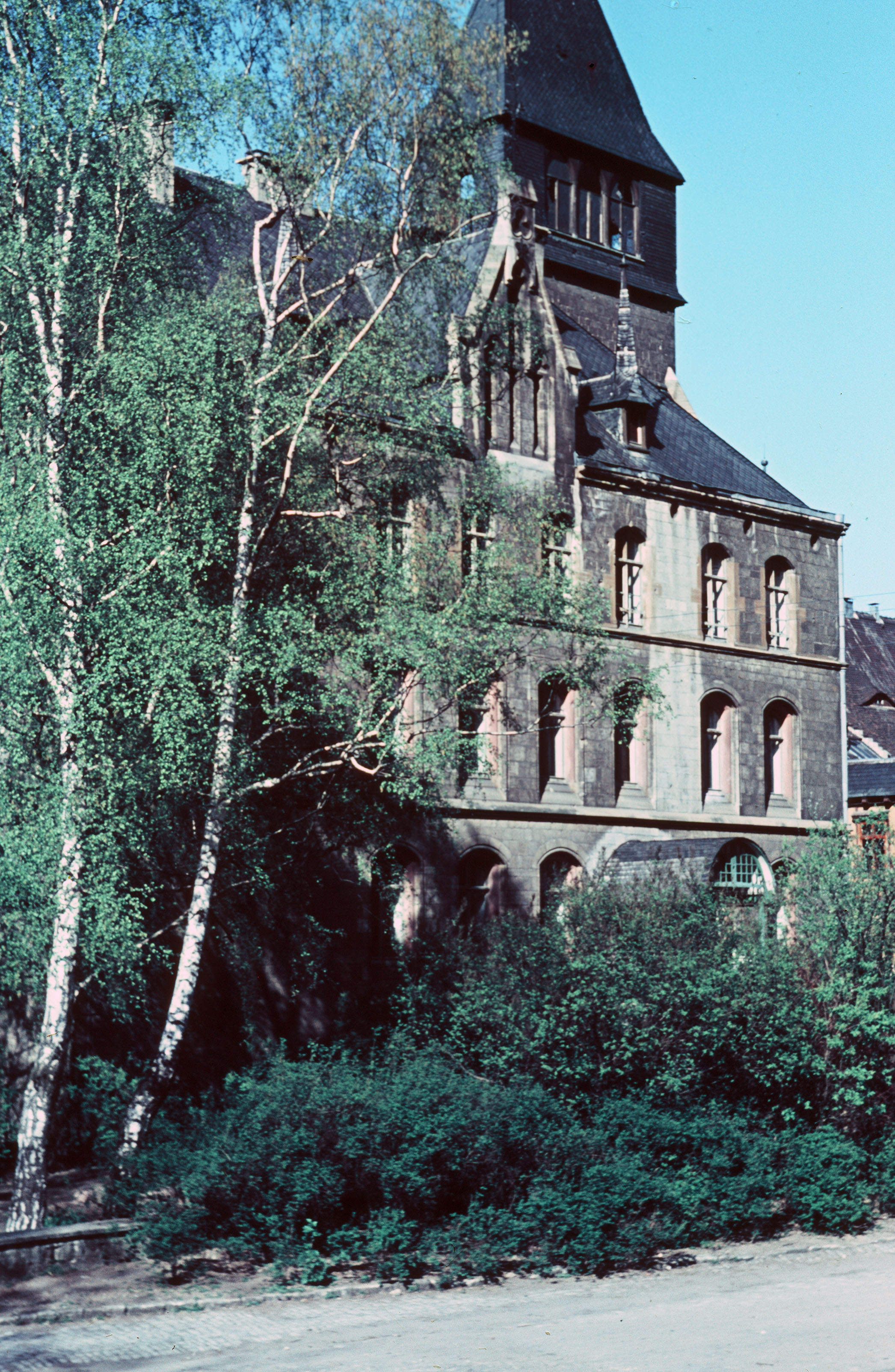 Schulhaus des Zisterzienserklosters Pforta, umwachsen mit Birken und Büschen