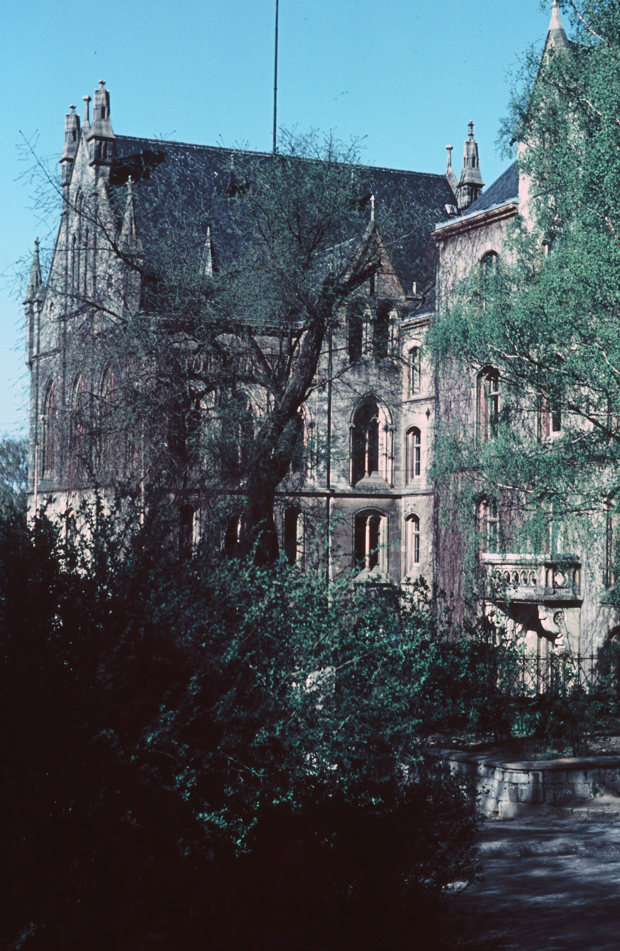 Schulhaus des Zisterzienserklosters Pforta, umwachsen mit Bäumen und Büschen