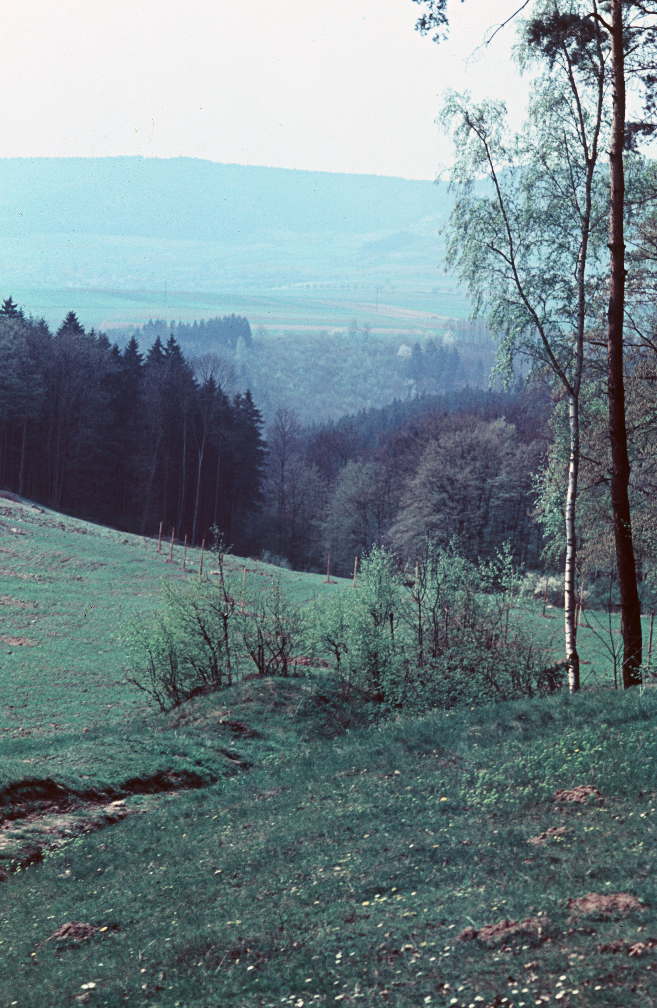 Mittelgebirgslandschaft, Neupflanzung von Obstgehölz, Mischwald, Nadelwald