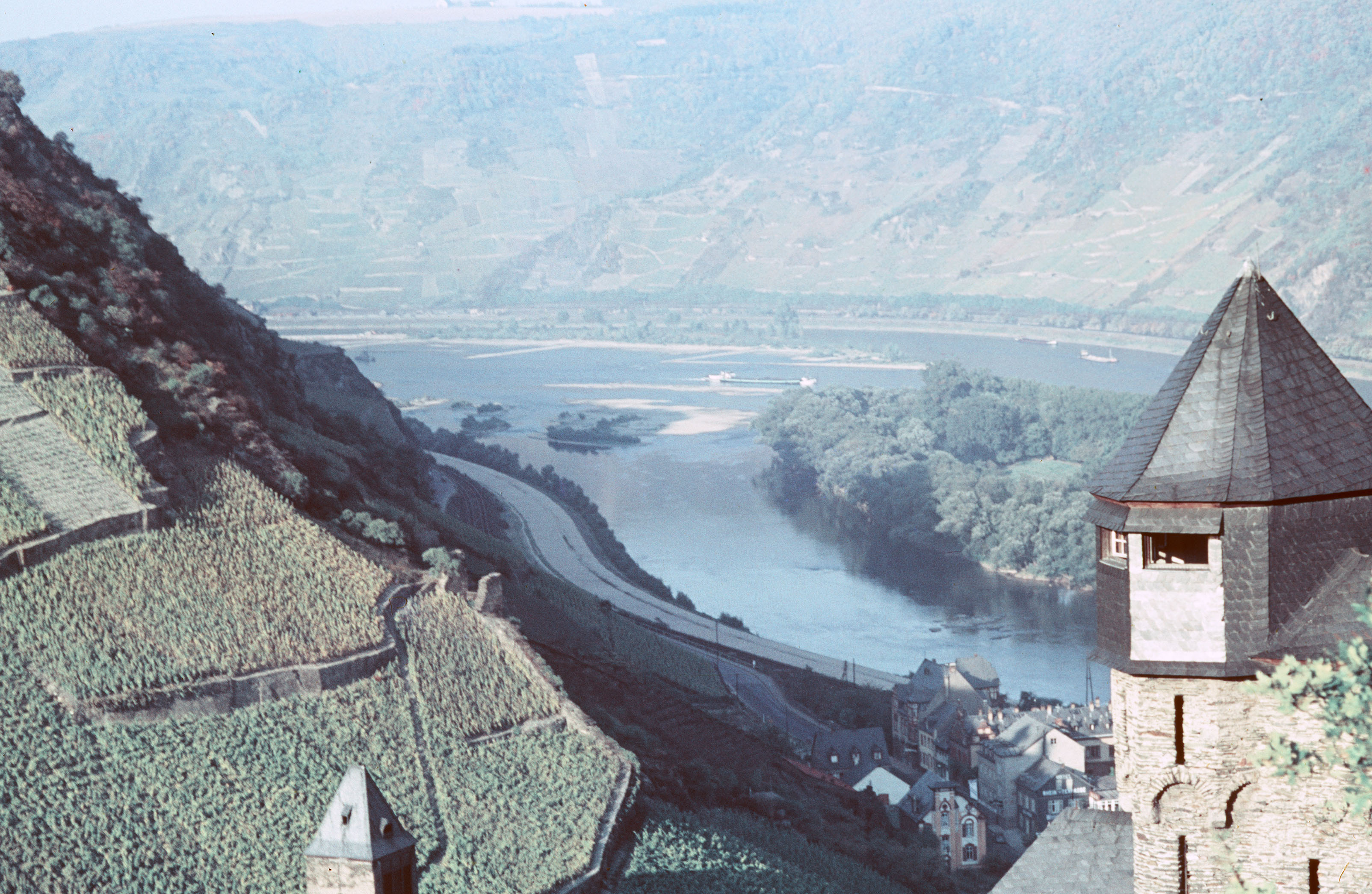 Blick über Weinberge und Rhein bei Bacharach