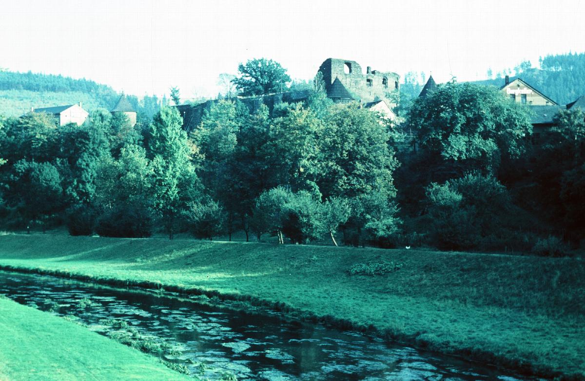 Blick über Weiße Elster auf Burgruine Elsterberg