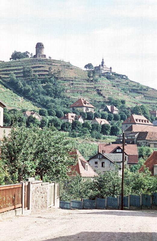 Blick auf Weinhänge bei Radebeul, Bismarckturm, Spitzhaus