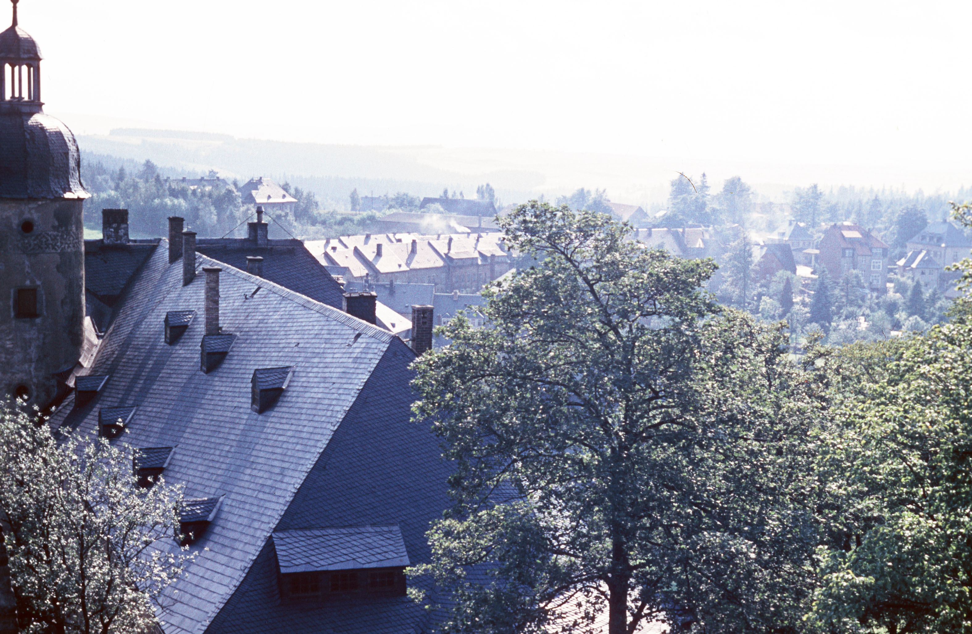 Blick von Burg Frauenstein auf Frauenstein mit Gottfried-Silbermann-Museum