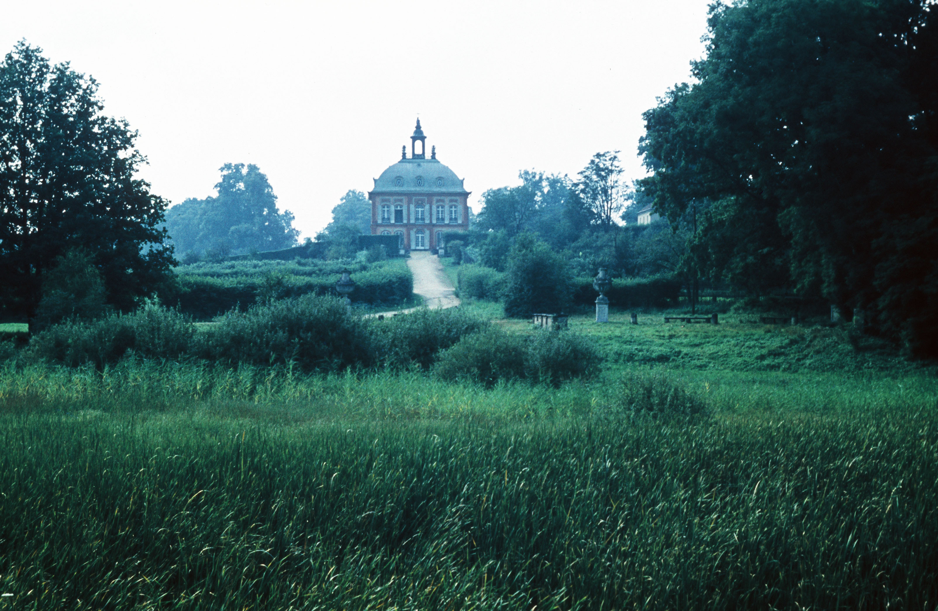 Fasanenschlösschen vom Park aus über Wiesen blickend