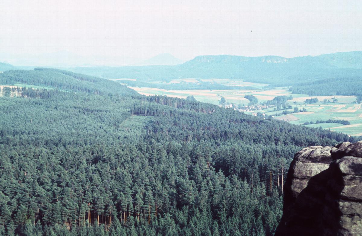 Ausblick vom Pfaffenstein über Wald und Felder
