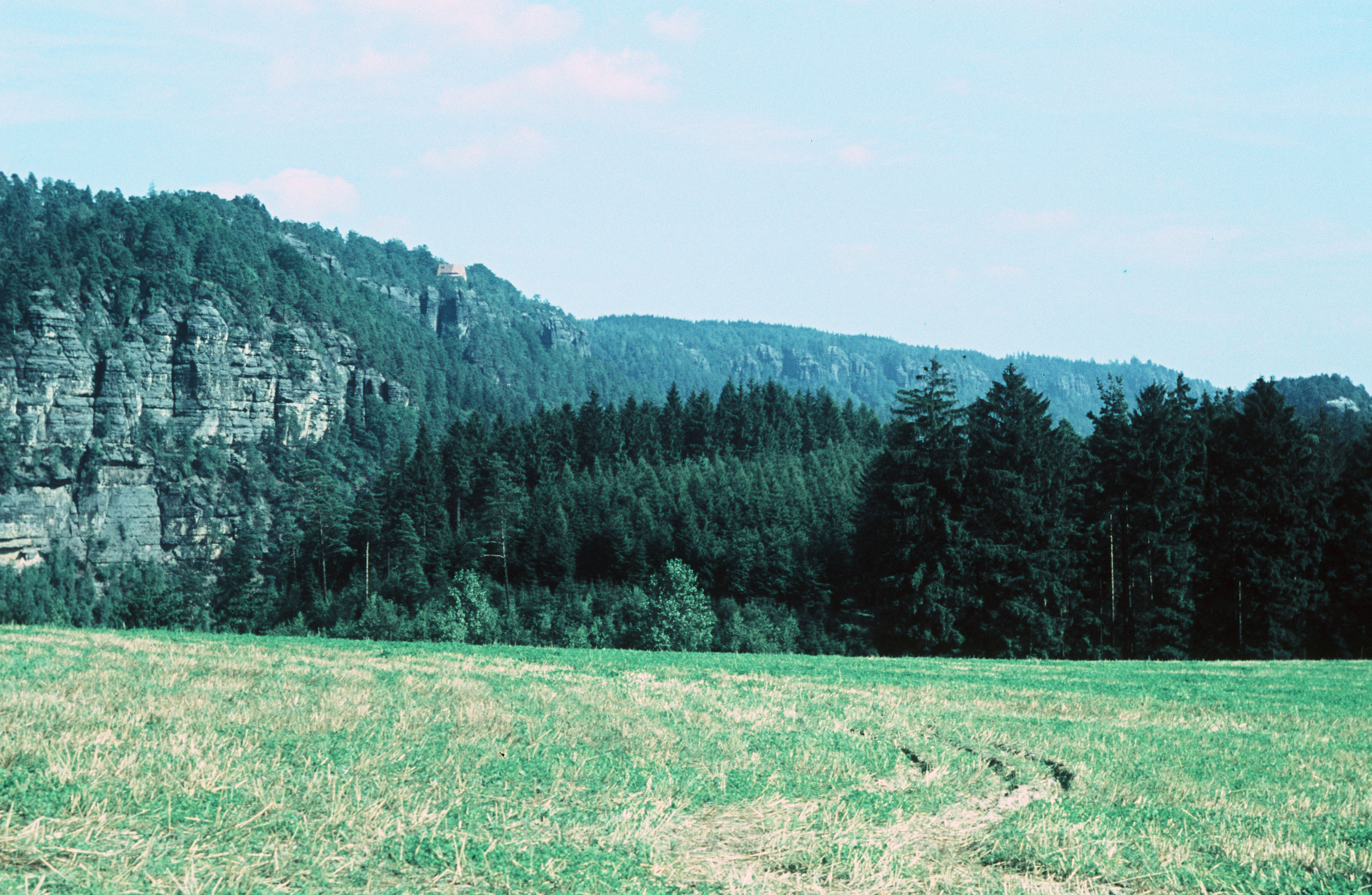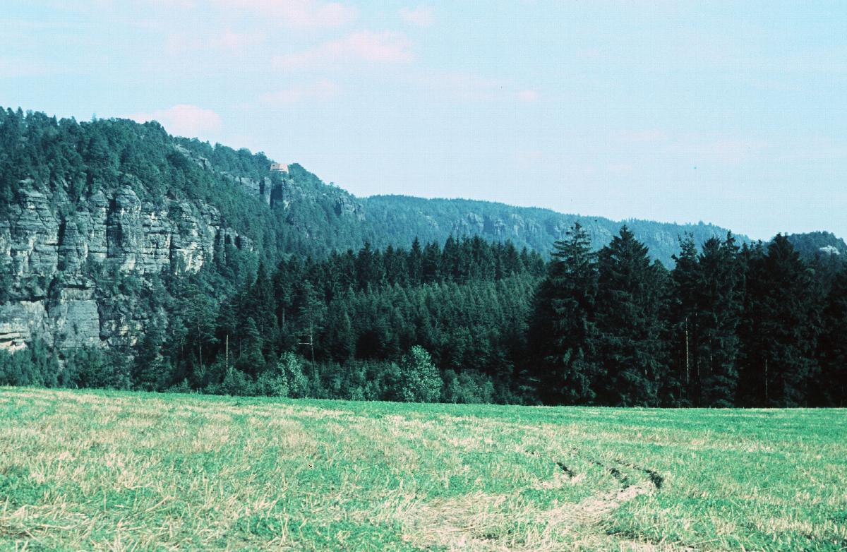 Blick auf die Sandsteinfelsen des Brand vom Polenztal aus