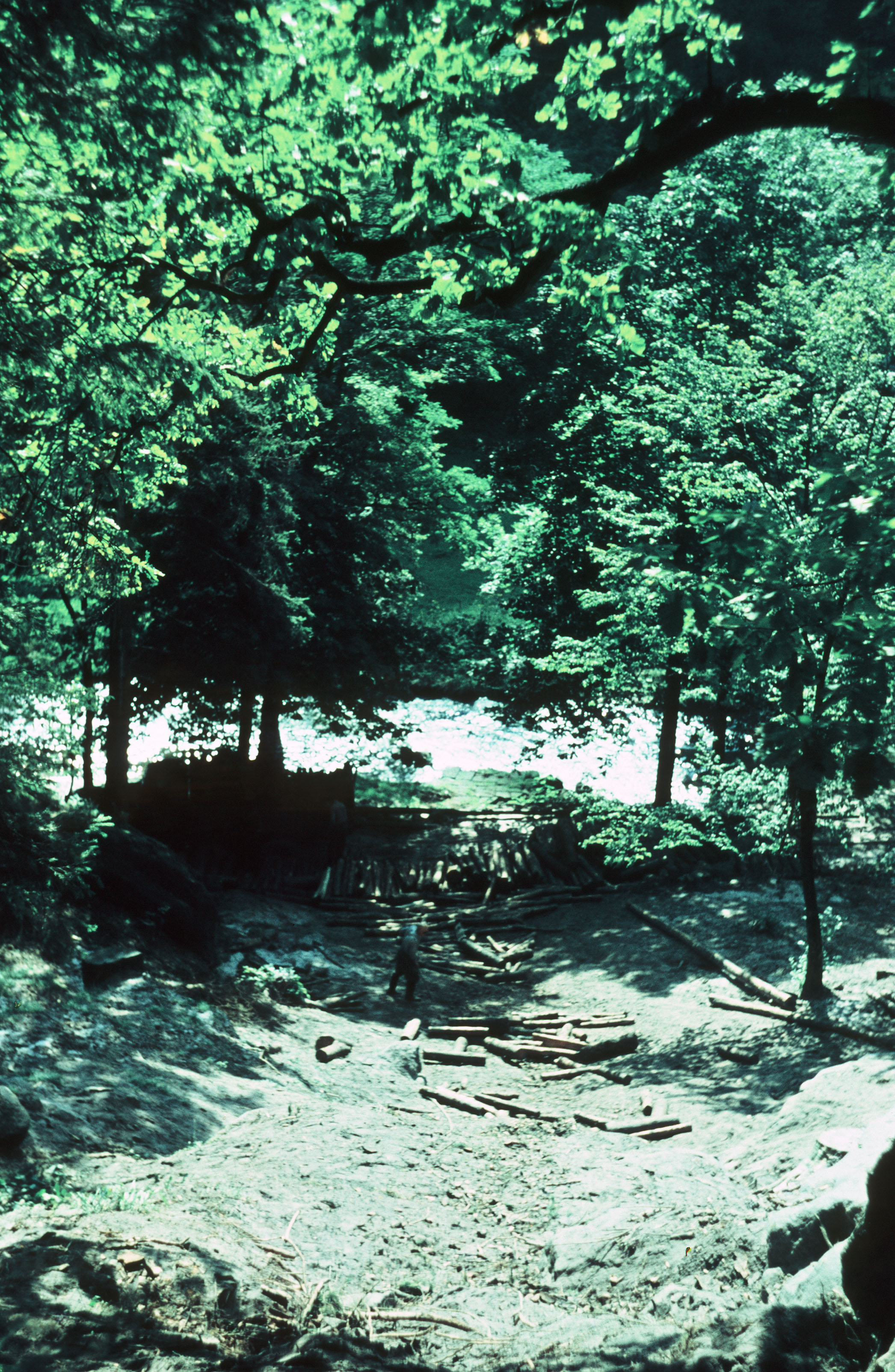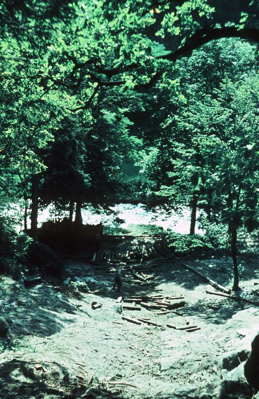Hang des Brand mit Baumstämmen am Flussufer