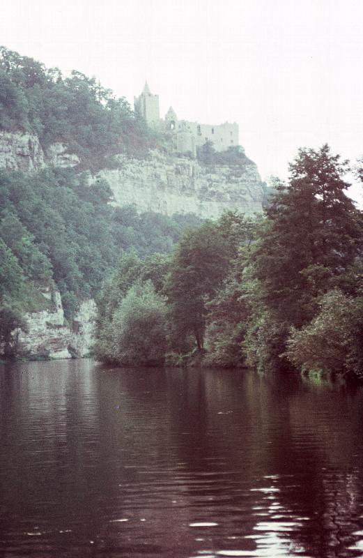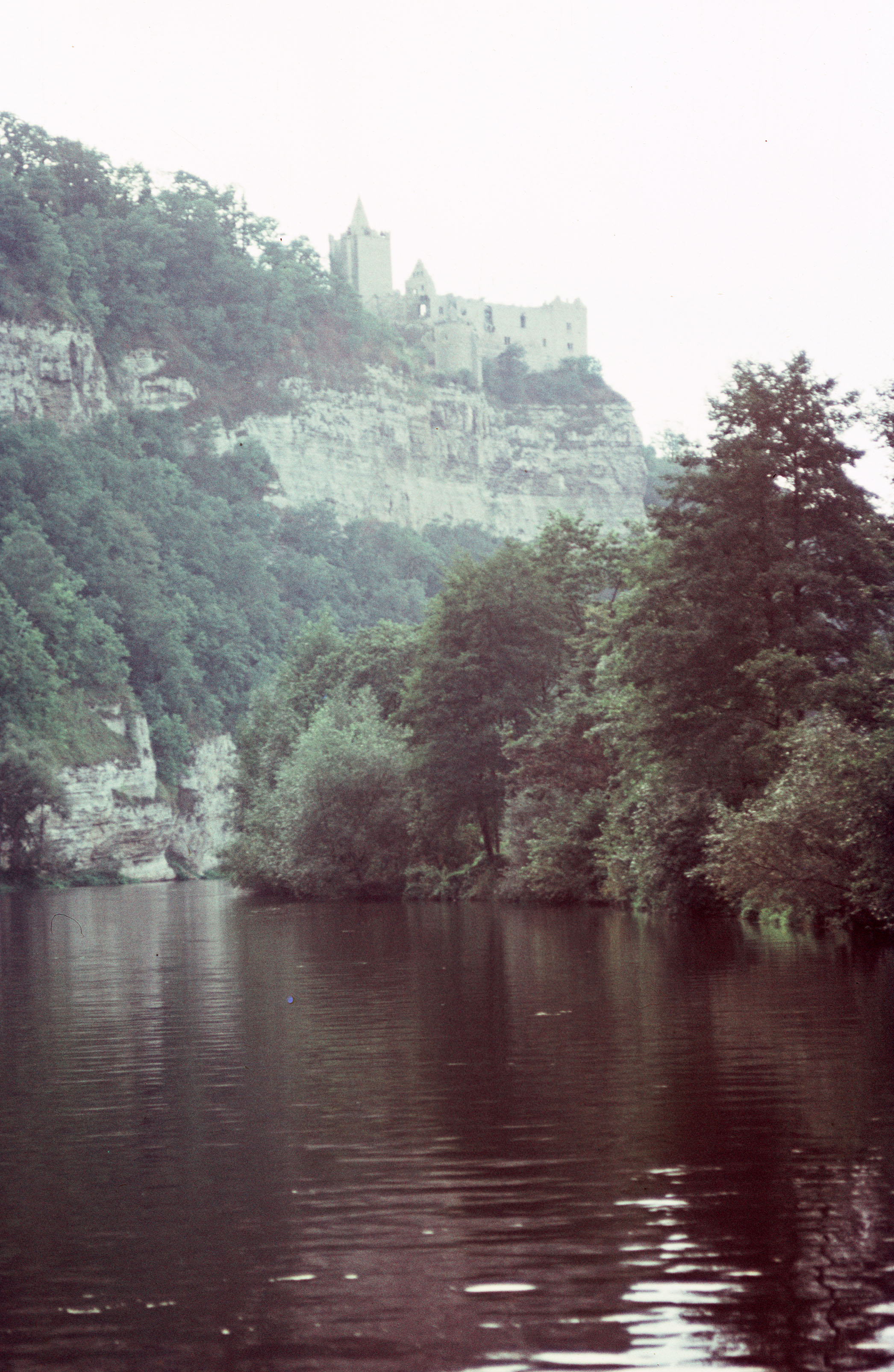 Blick vom Saaletal auf Felshänge und Rudelsburg