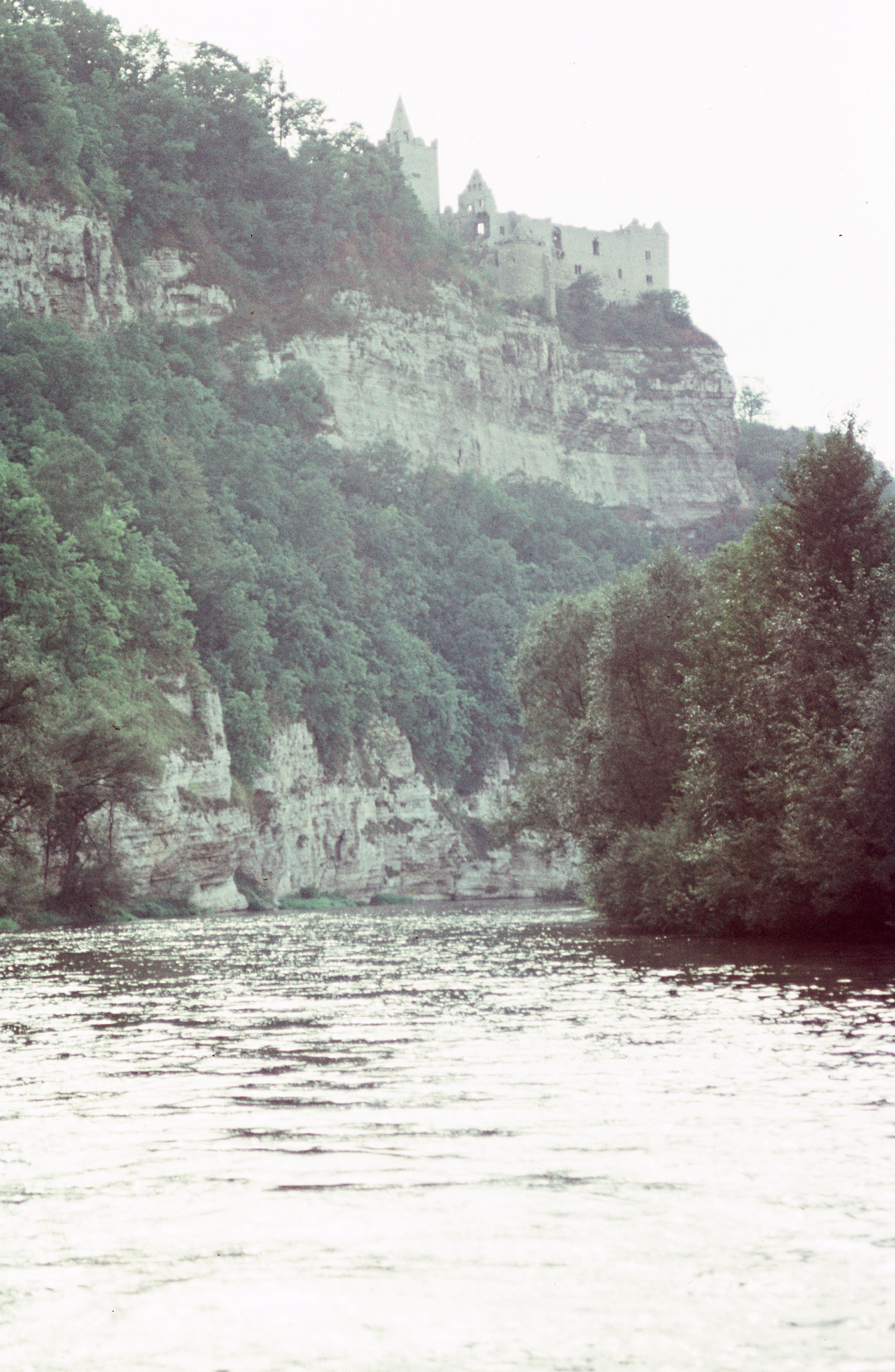 Blick vom Saaletal auf Felshänge und Rudelsburg