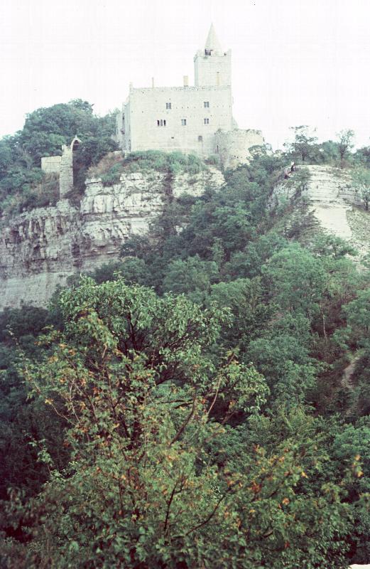 Blick vom Saaletal auf Felshang und Rudelsburg