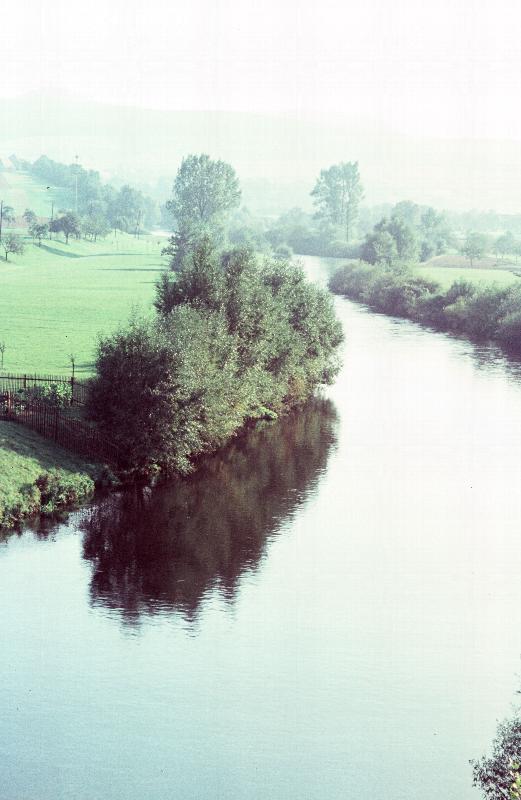 Blick über Saale bei Rothenstein, von Grünland umgeben, Berge