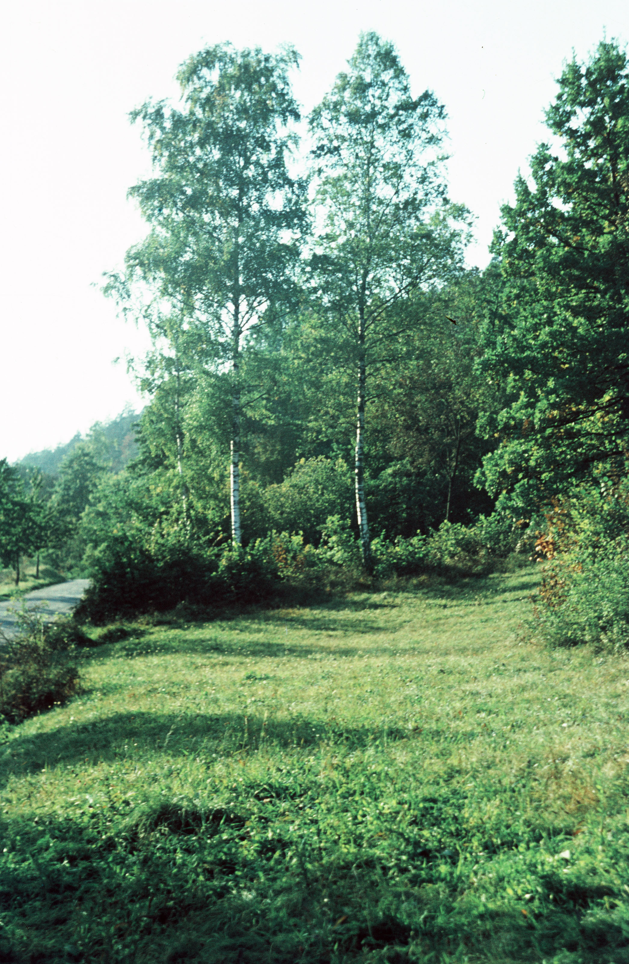 Wiese und Wald entlang einer Straße