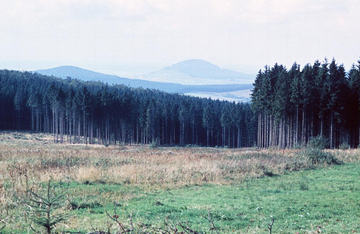 Heide und Forstlandschaft bei Kassel, Wald und Felder