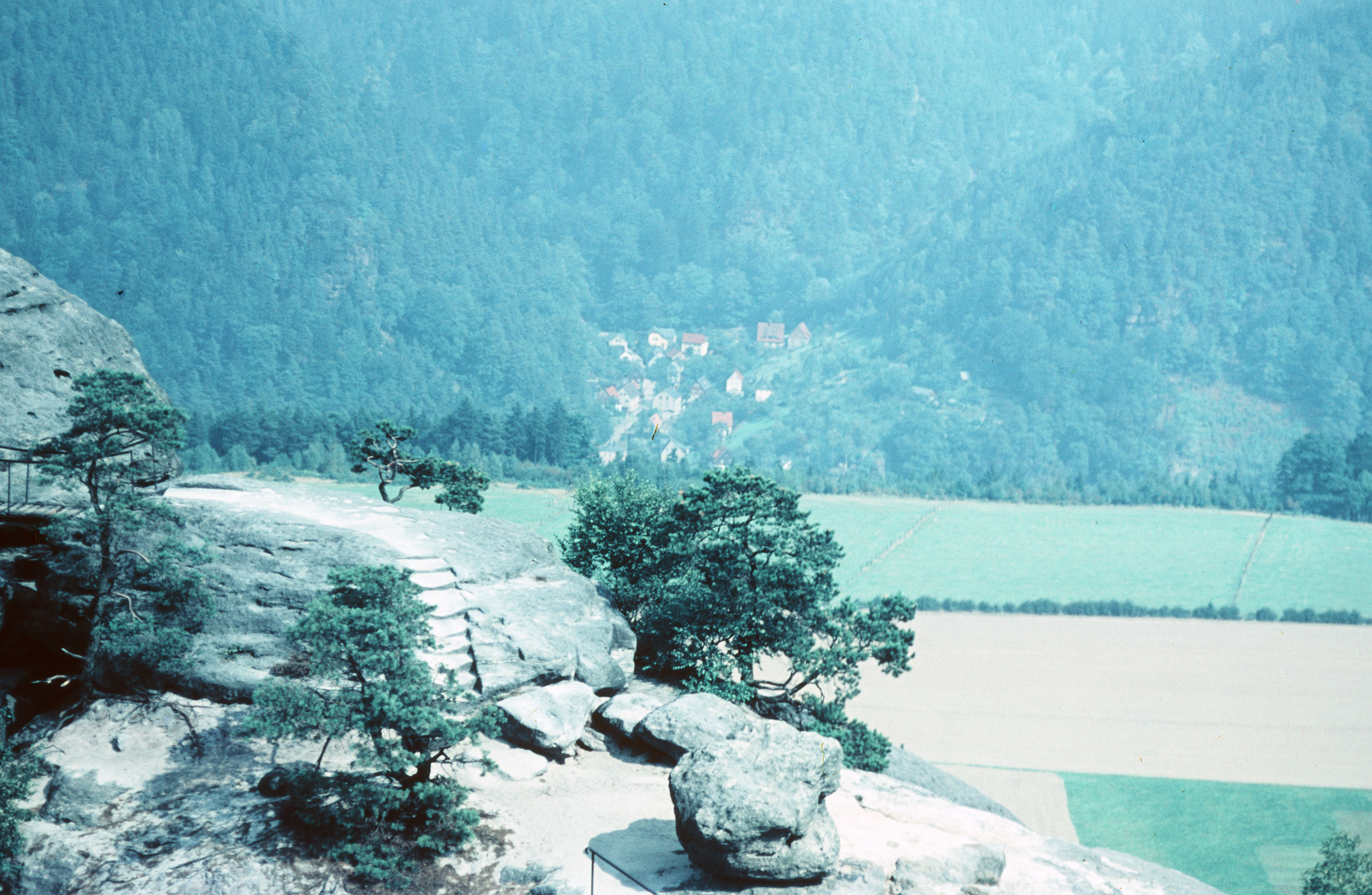 Ausicht von Kaiserkrone auf Schmilka und dahinterliegende Waldlandschaft
