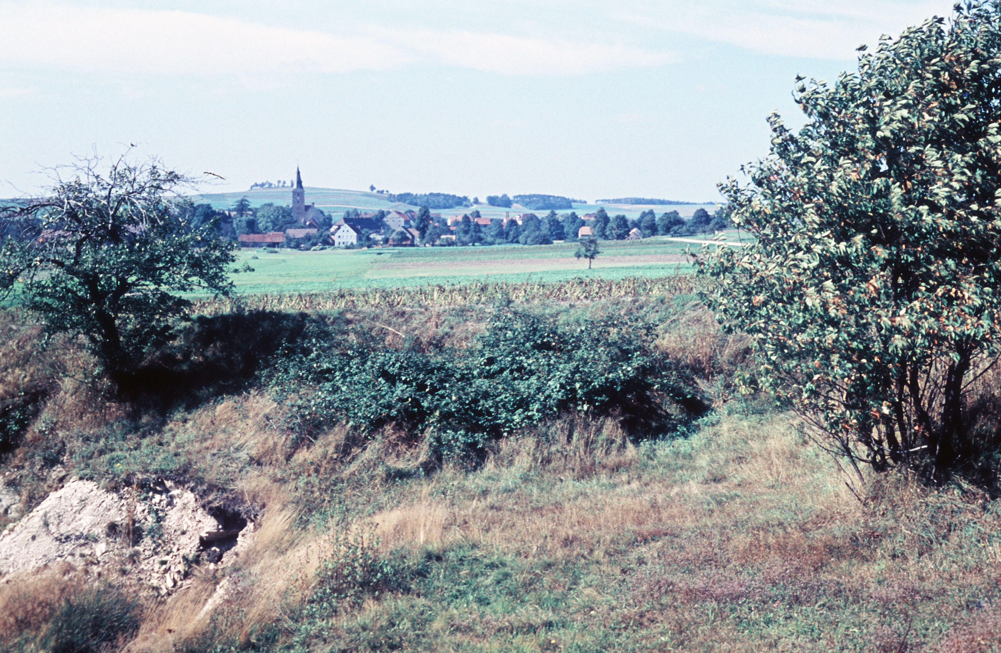 Blick über Felder auf Rengersdorf mit Kirche