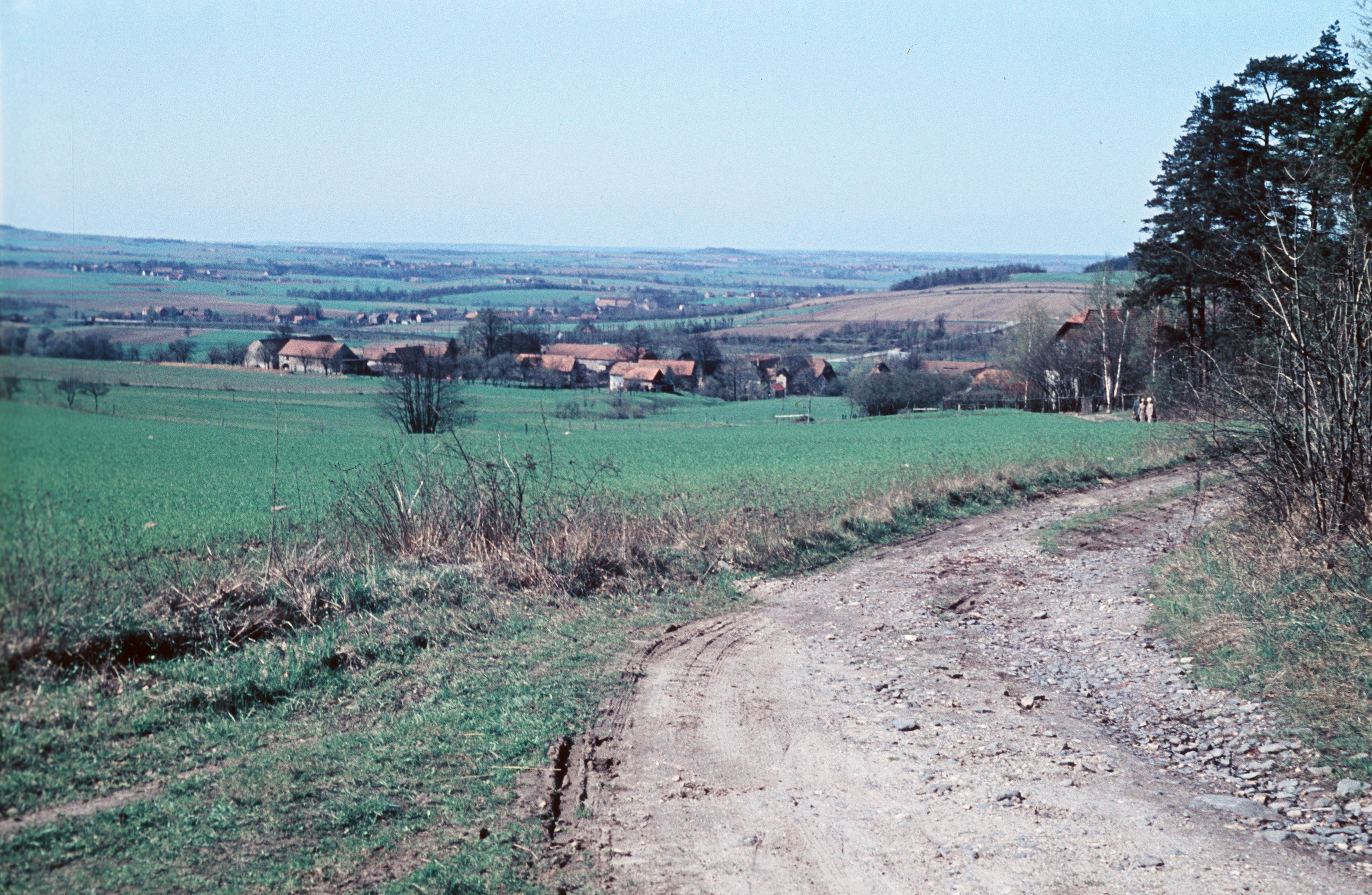 Blick vom Rotstein bei Rosenbach über hügelige Ackerlandschaft mit Ortschaften
