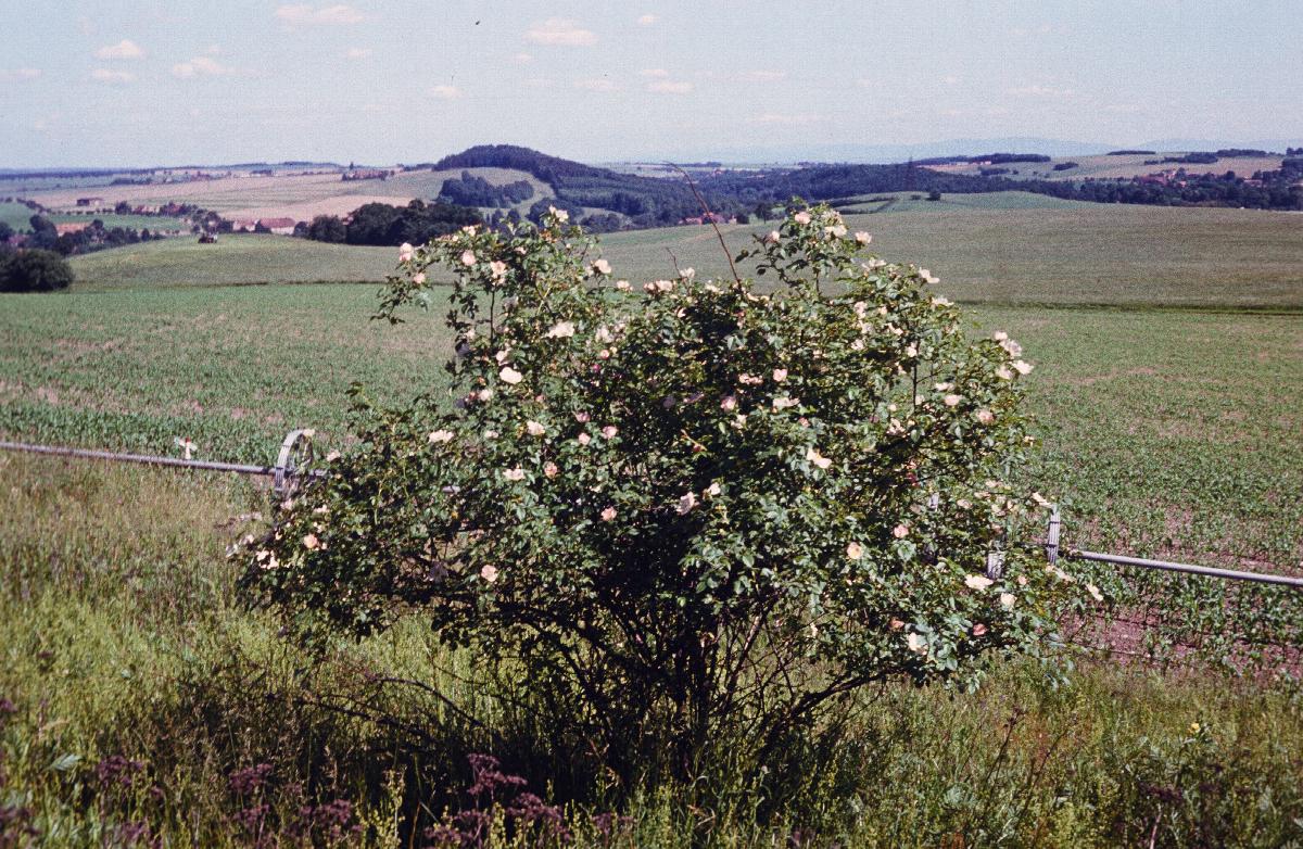 Blick vom Heideberg über hügelige Ackerlandschaft