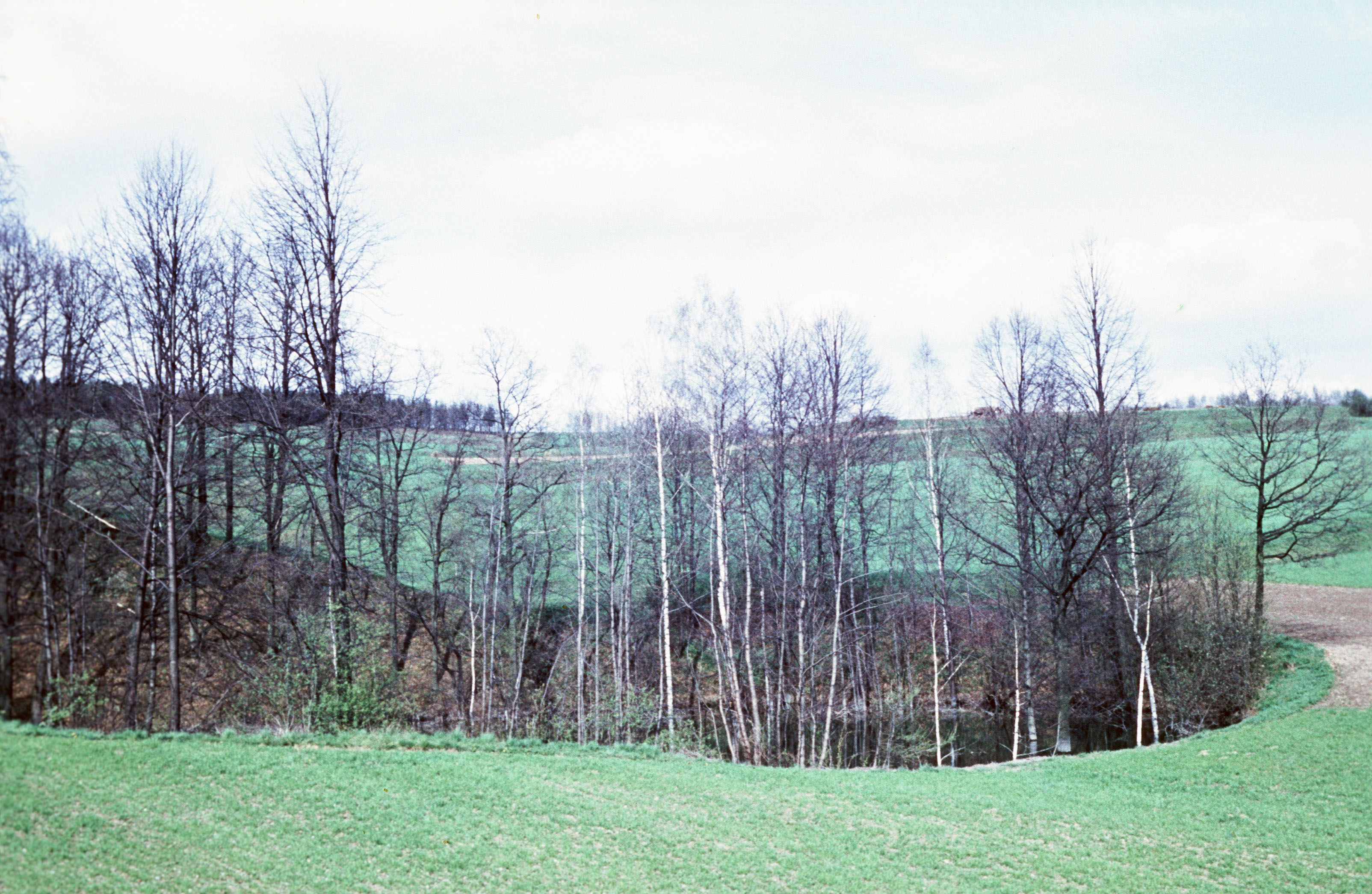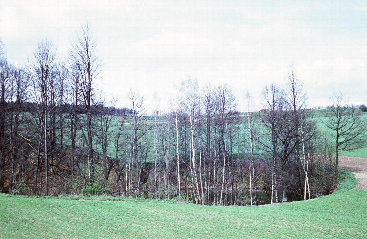 Bewachsener Kohlenkalkbruch am Geiersberg umgeben von Feldern