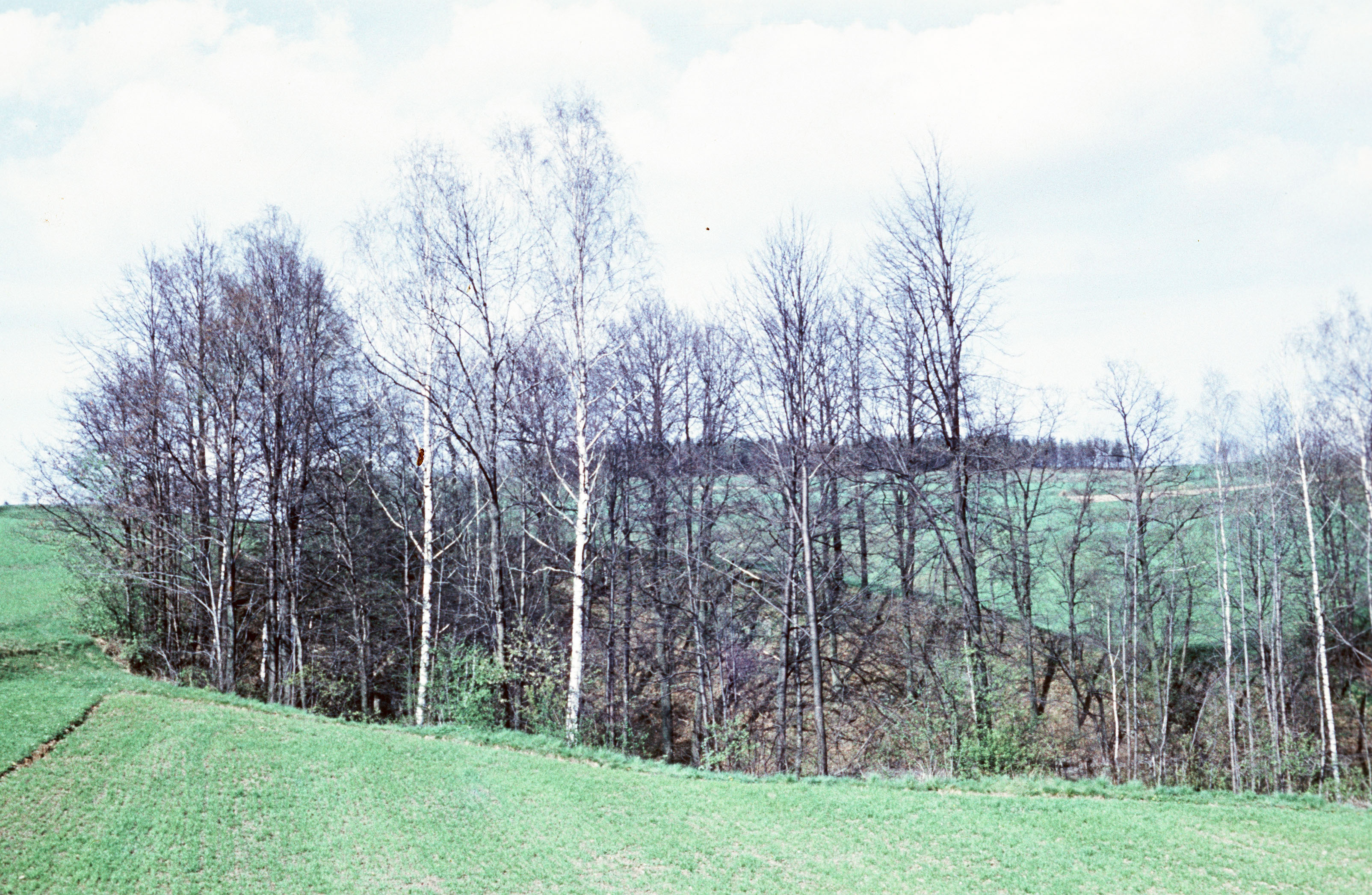 Bewachsener Kohlenkalkbruch am Geiersberg umgeben von Feldern