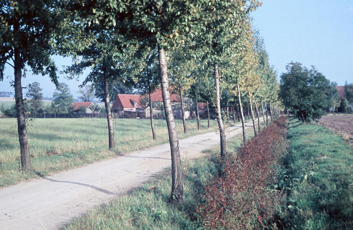 Von Grünland und Acker umgebener Weg bei Ullersdorf