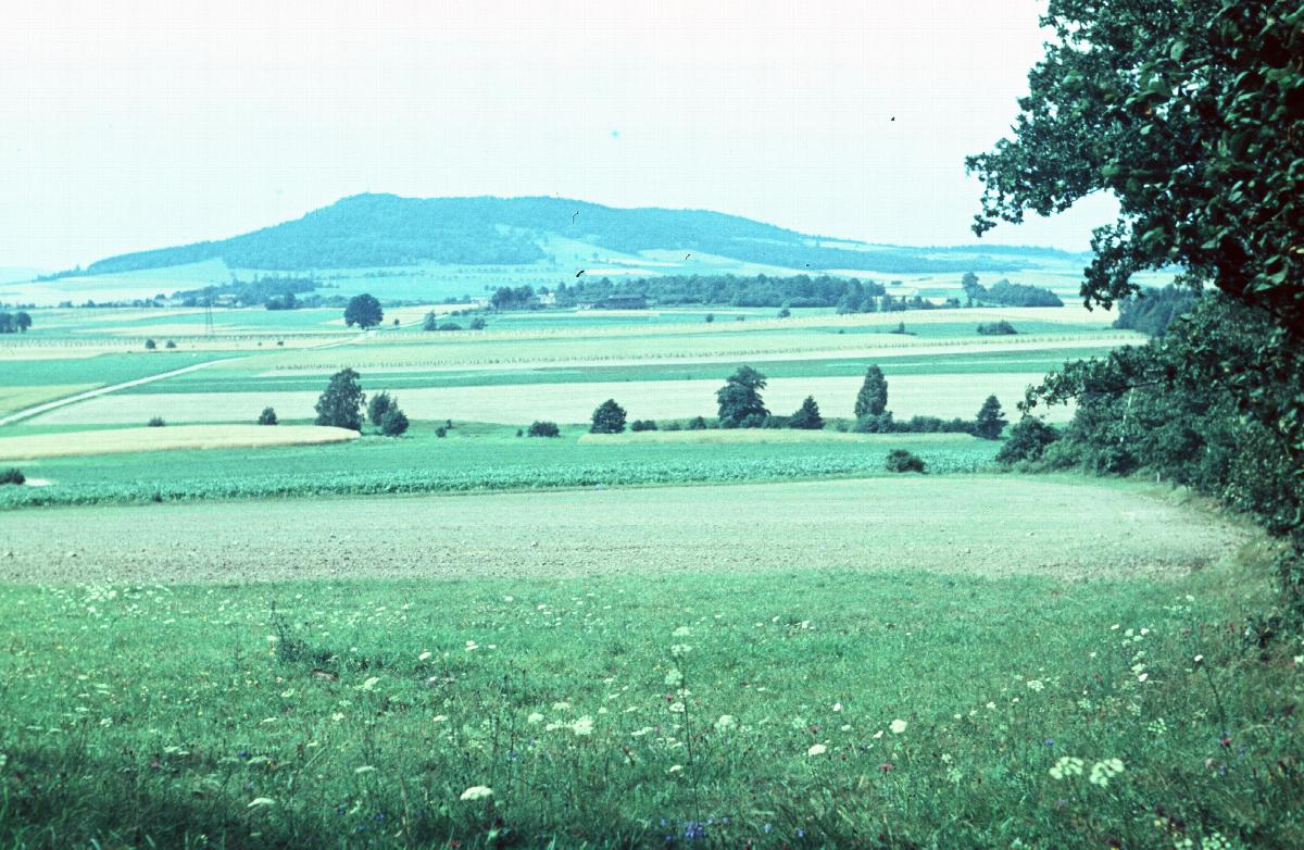 Blick vom Spitzberg über Ackerland zum Rotstein